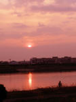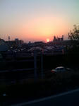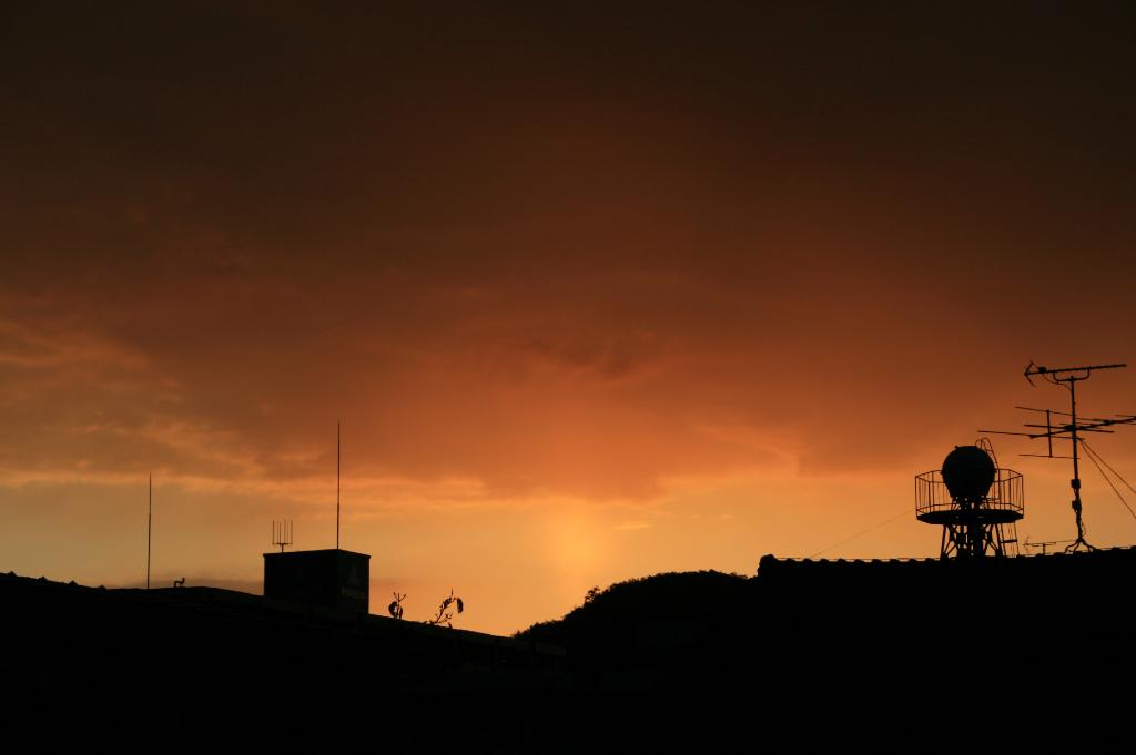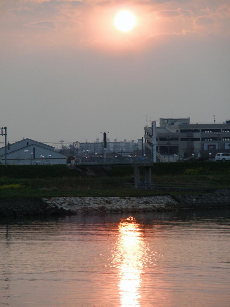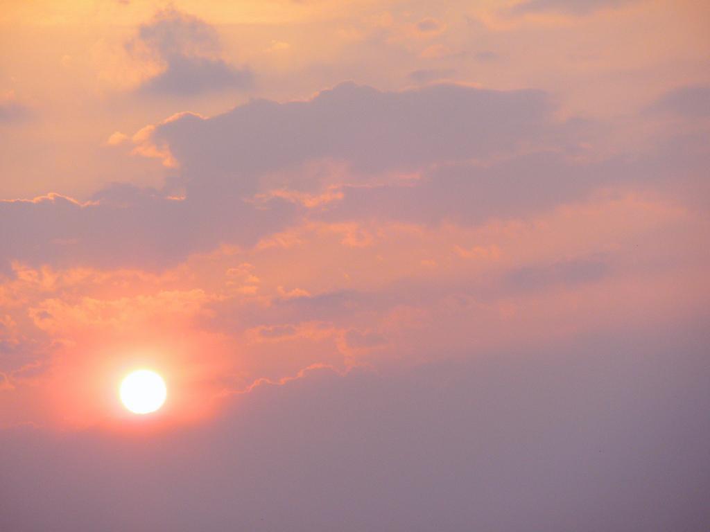 それは大きな夕日でした。輝くガラスのようなフレアの球体に包まれていました。