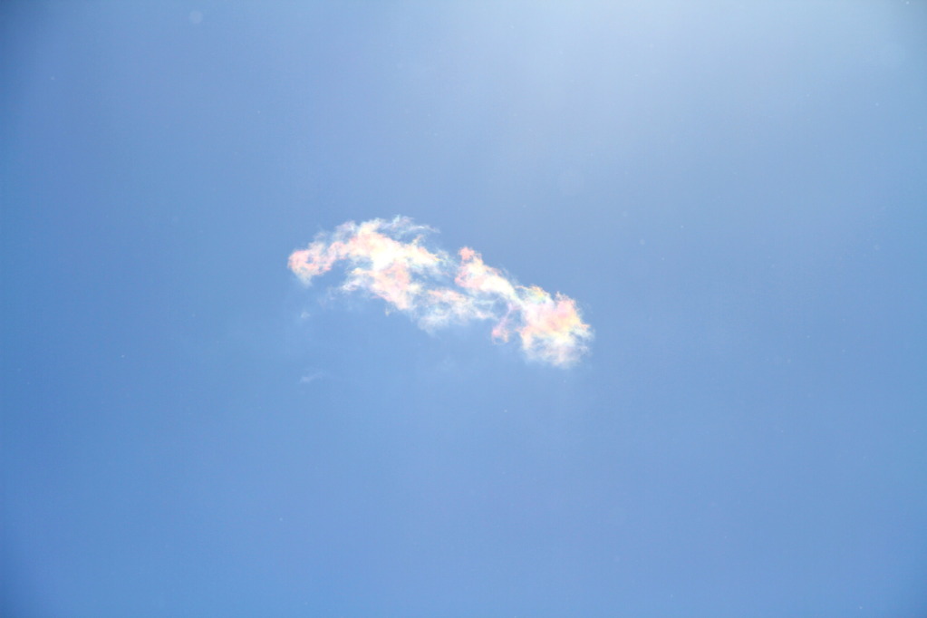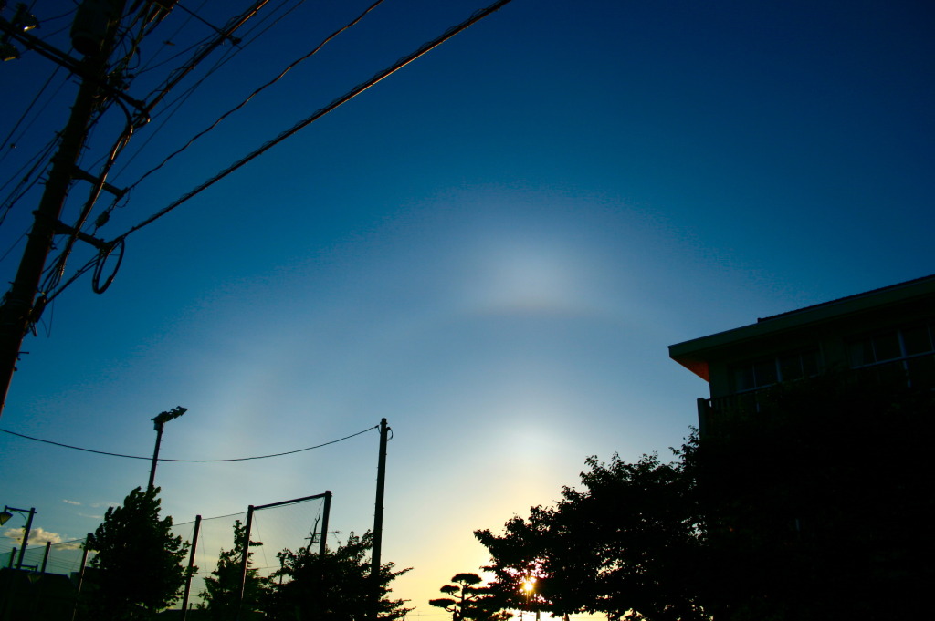 暈が横につぶれて見えているのが外接ハロらしいです。(wikiによれば)