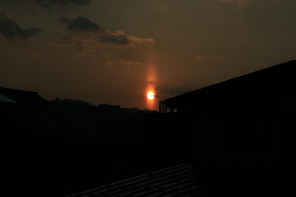 7時1分。まだ細長い太陽。ろうそくの炎のかたち。