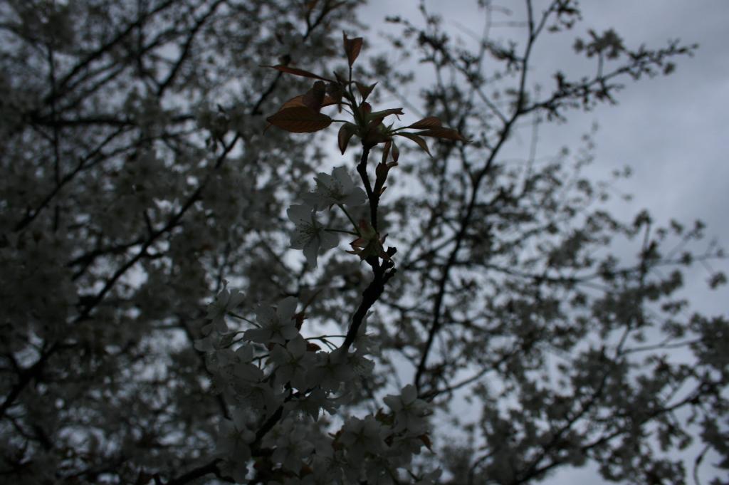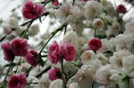 同じ枝に白い花と赤い花。なんてふしぎなんでしょう。