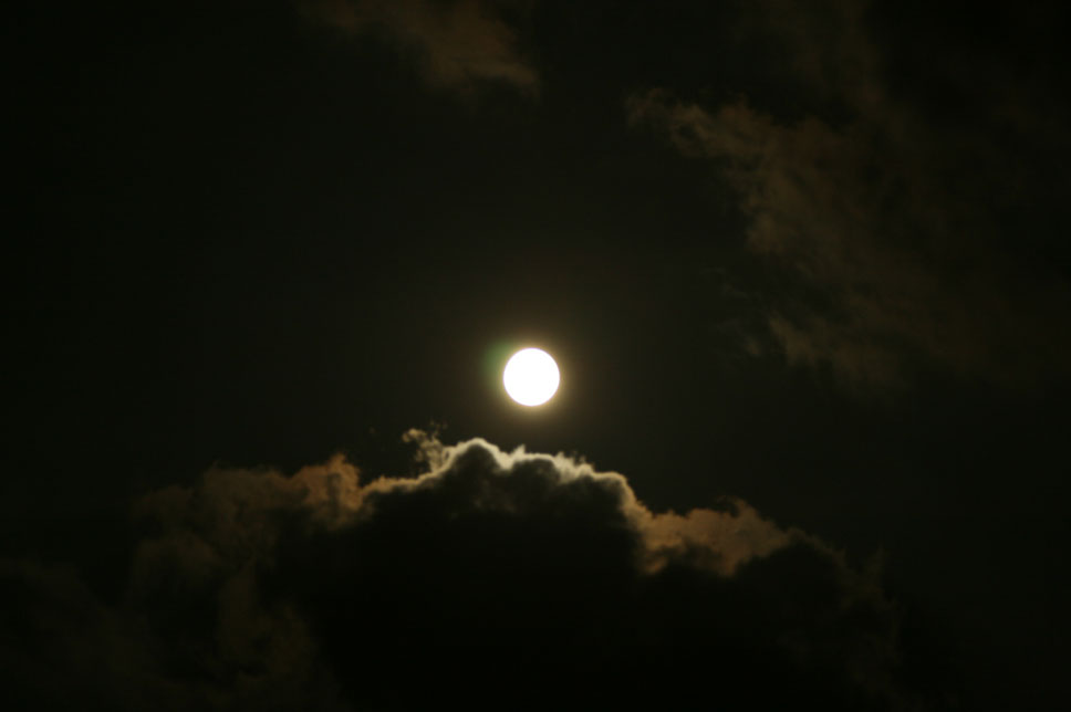 うっすらと暈を被る月。