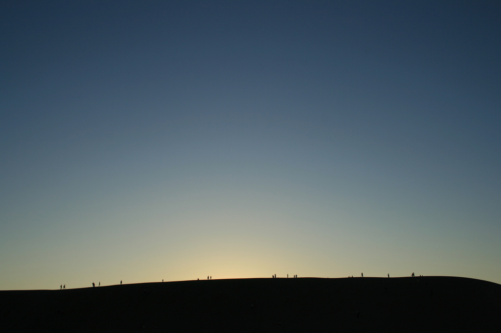 砂丘へ日没を見に行く。馬の背ではもう大勢の人が日没を待っている。