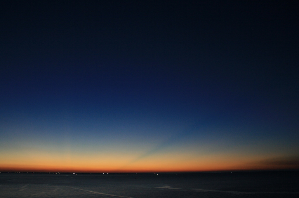 太陽が沈んだ後、空がゆっくり夜の色に変わって行く。