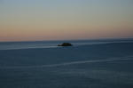 夕暮れの中、北北東にむかって泳ぎ去る鯨岩。